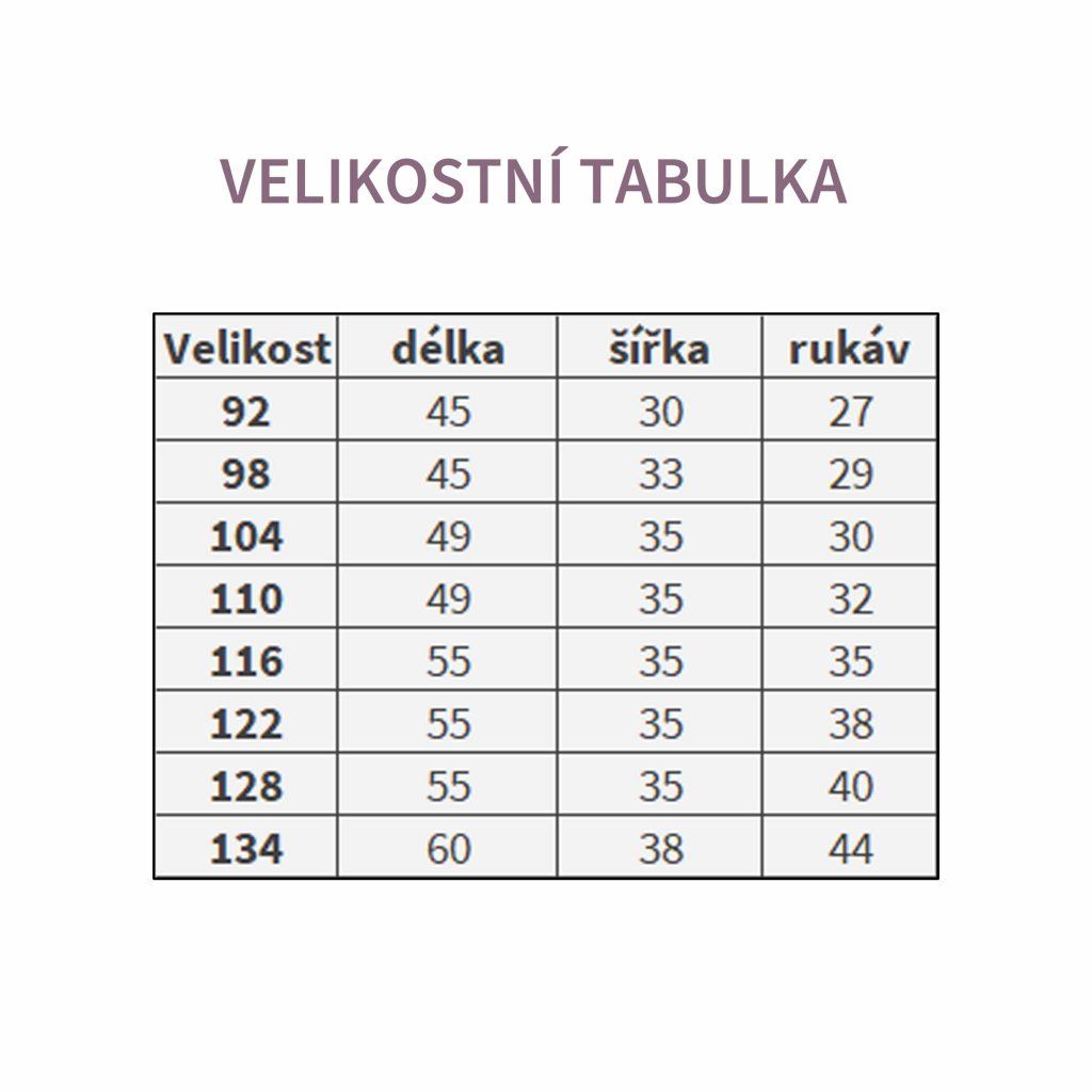 | velikost | délka | šířka | rukáv |