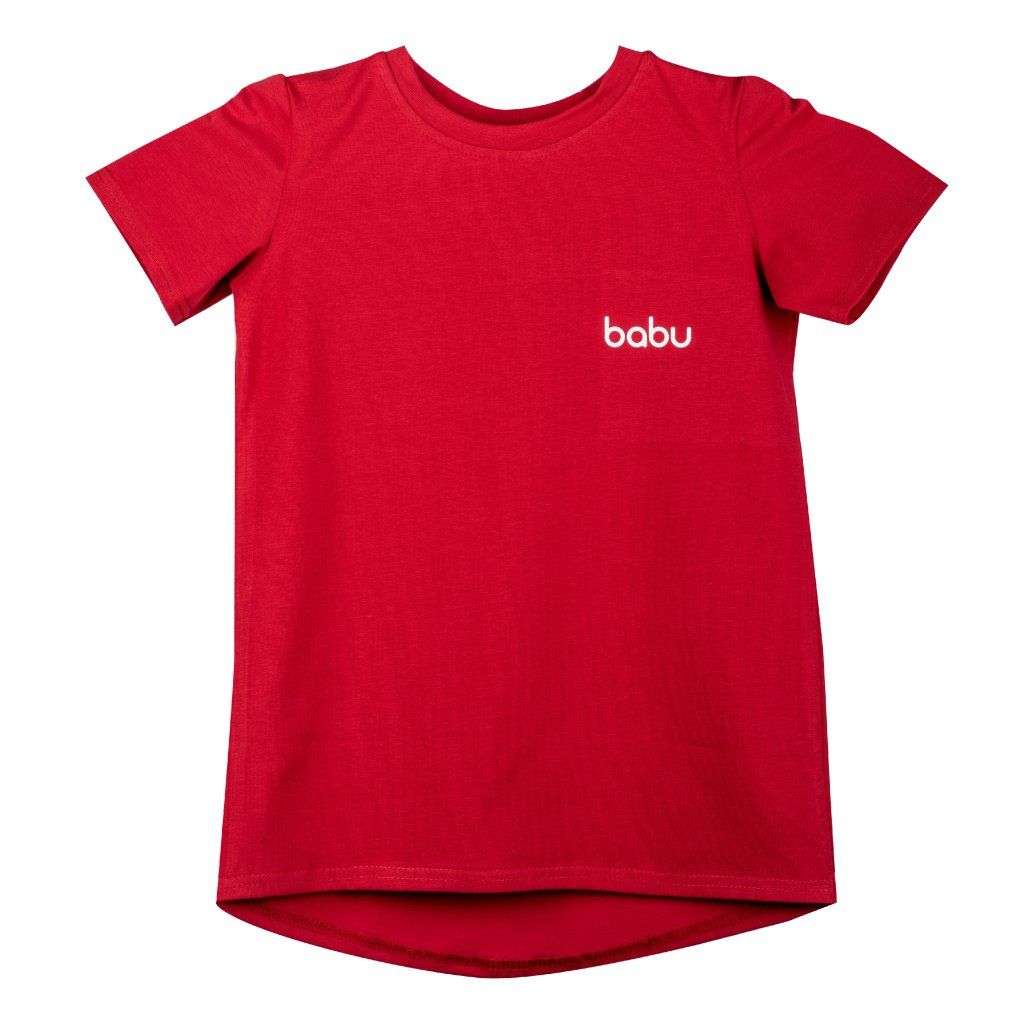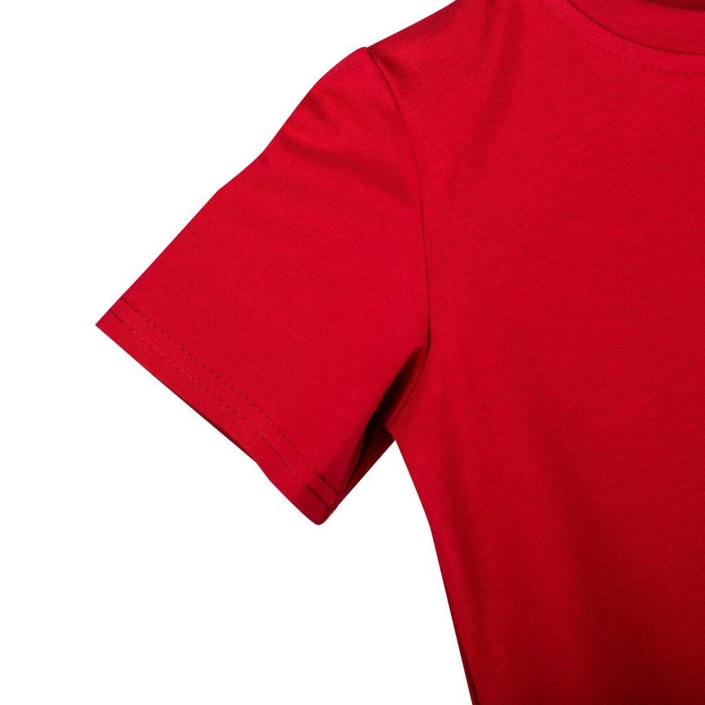 Dětské červené tričko s krátkým rukávem a prodlouženými zády